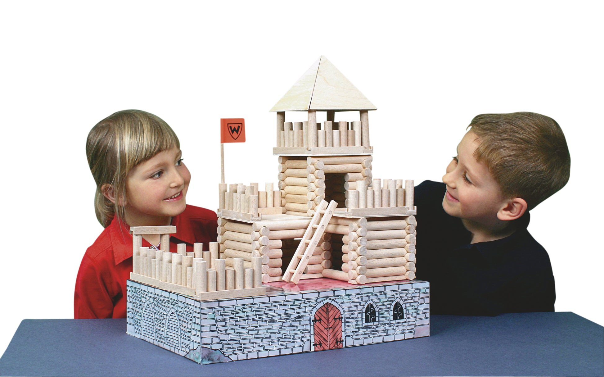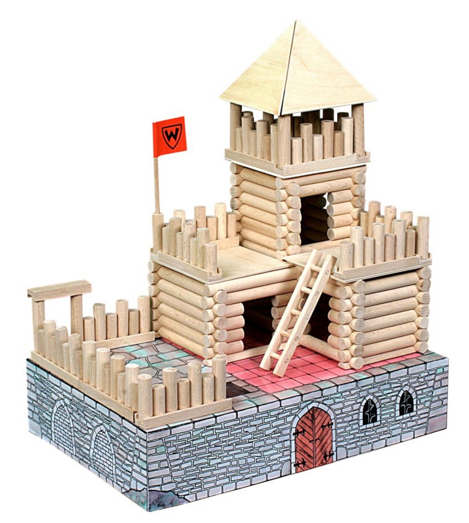 Fallegt bjálkavirki. 194 kubbar. Byggt á botni kassans.