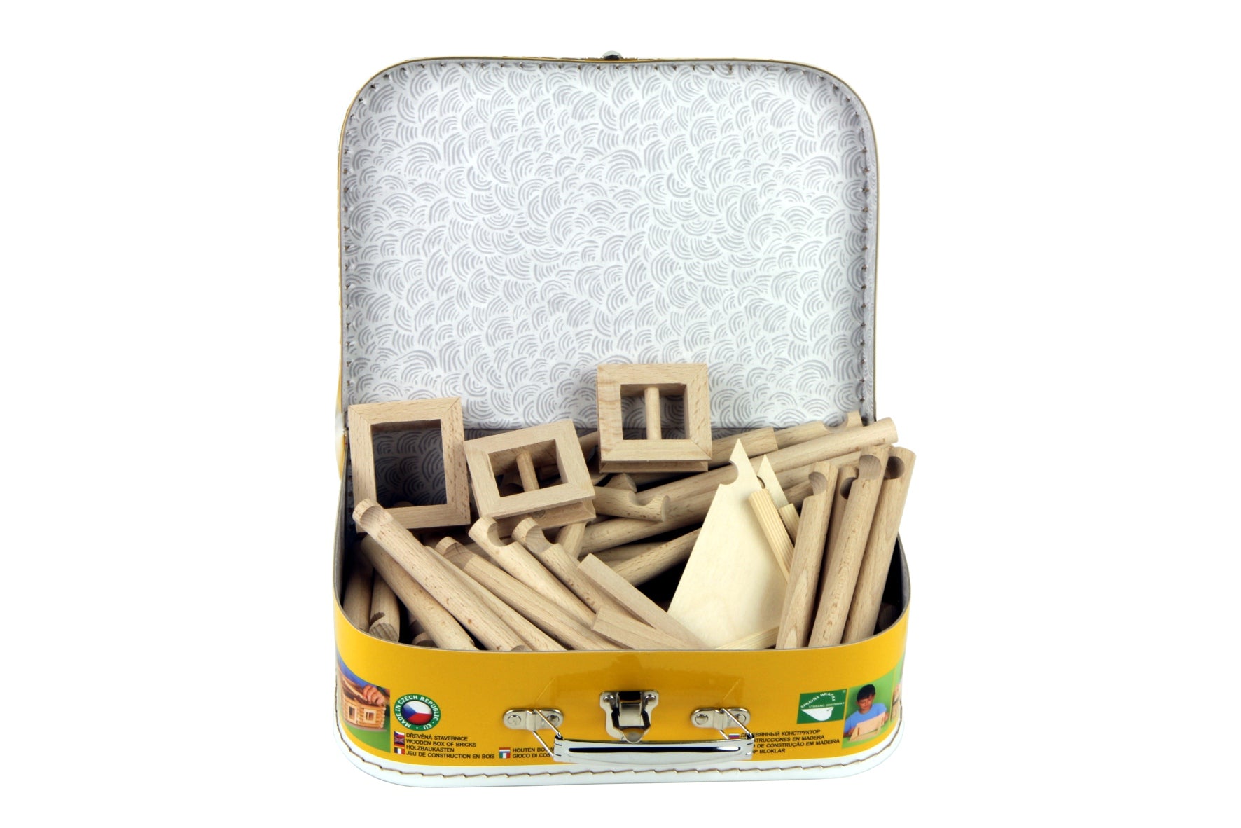 Taska með 72 kubbum. Minnst 8 mismunandi byggingamöguleikar. Gott byrjandasett.